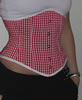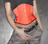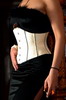 ein kleines Modell, das hervorragend eyecatching zur Alltagsmode wie Hosen und Röcken kombiniert werden kann. Linkes Bild zeigt das Modell in champagnerfarbenen Miederstoff mit kleinen glänzenden Tulpen mit schwarzen Paspeln, die wunderschön die (Figur-) Optik betonen.