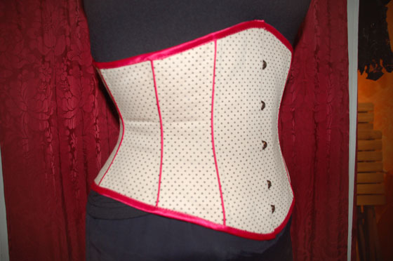 Beschreibung: ein Taillenkorsett (CHILLI) in Miederstoff haut mit schwarzen Pünktchen,