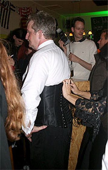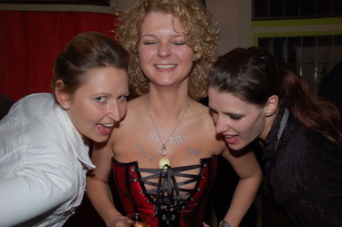 zur Event-Übersicht Es wurde in der smarten Bar waschbütt noch am Vormittag fleißig gewerkelt, denn schließlich sollte die erste Vernissage in diesen Räumlichkeiten gelingen. Als um 20h die Fotomodelle (Bara, Michiko, Steffi, Tatie, Tanja und Patricia -einherzliches Dankeschön an Euch!) in ihren "Kalender-Korsetts" die waschbütt betraten war alles perfekt: die Bilder hingen, das Faß war angezapft und es wurde schon viel gelacht! Kunden, neue Korsettinteressierte und auch neugierige Stammgäste der waschbütt genossen den Abend bei ein, zwei oder mehr Gläsern Uerige vom Faß oder was das Herz sonst so begehrte: Frank und André von der waschbütt waren ein super Team! Selbst eine Anreise aus Siegburg oder Haltern-Lavesum war nicht zu weit. Es wurde viel nachgeschnürt, Knotentechniken ausgetauscht und selbst Frank von der waschbütt wollte seine Wette einlösen und hat sich ein Korsett anziehen lassen ;-) Nicht nur die Signierung der Kalender durch die Models war an diesem Abend angesagt, sondern auch das Signieren der Dekolletés der Modelle vom Fotografen Christian Ritter! ...hier nun ein paar Bilder (nach erfolgter Zensur ;-) sowie Presseberichte aus dem Viertel unter www.einkaufen-duesseldorf-flingern.de :